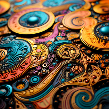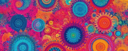 Abstract background with intricate mandala patterns in vibrant, contrasting colors.