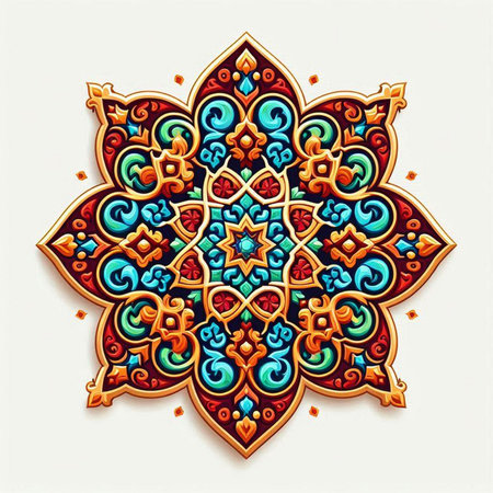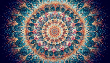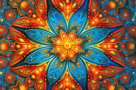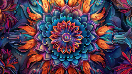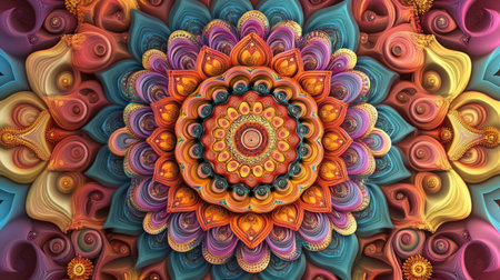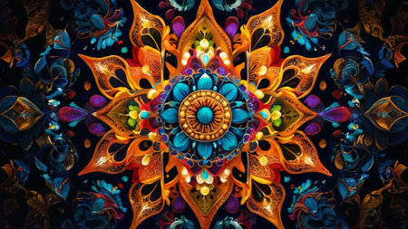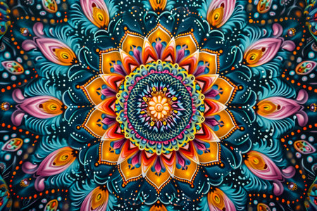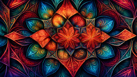 Mandala-inspired geometric pattern, vibrant symmetry. generated by ai
