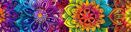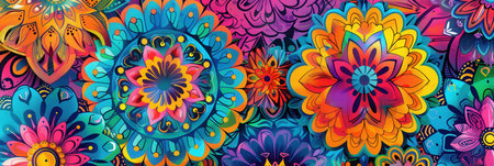 Brightly colored floral mandalas burst with intricate patterns, celebrating nature's diversity and artistic expression in vivid hues.