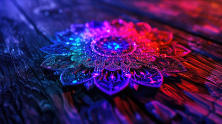 Intricate geometric mandala pattern featuring a symmetrical design with bright and vivid colors. Ideal for meditation, art projects, and decorative purposes.. AI Generation