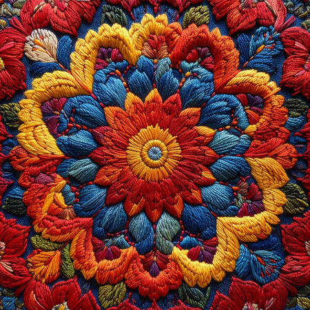 A stunning close-up reveals the intricate world of traditional embroidery, where every stitch tells a story of cultural heritage and skilled craftsmanship.