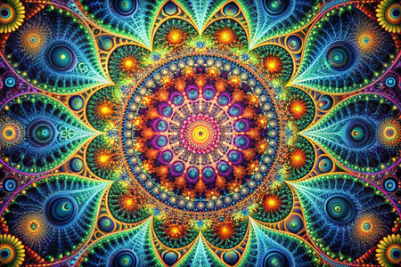 Layers of intricate mandala patterns with abstract geometric shapes and fractallike designs