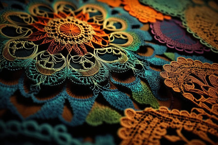 Colorful handmade crochet circles in various patterns and sizes. That the image is generated using AI.