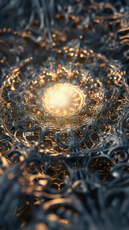 Intricate golden rings surround a glowing center.