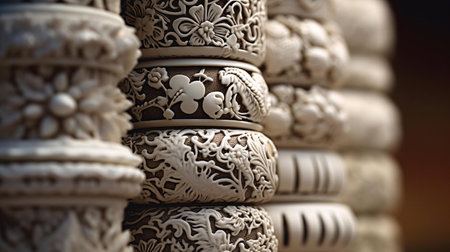 Detailed wood carving creating a beautiful floral pattern, showcasing craftsmanship and artistry. Ai generated image