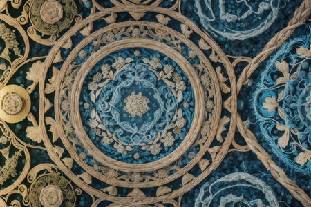 A stunning close-up of an intricate decorative design showcasing vibrant blue and gold accents, highlighting exquisite craftsmanship and artistic beauty.