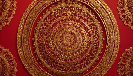 Thai gold pattern on red background with copy space for text.
