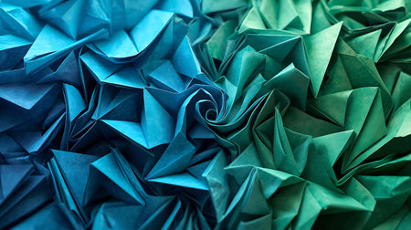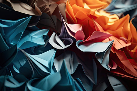 Colorful origami crumpled paper as background. Close up