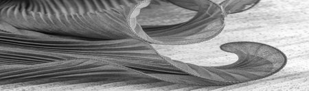 Background texture, Black and white silk fabric, silver. titanium. floral pattern, corrugation, reef, undulation, undulation, ripples, a small wave or a series of waves on the surface of the fabric,