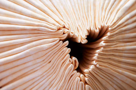 Close-up of the inner surface of a wild mushroom. Abstract macro background.