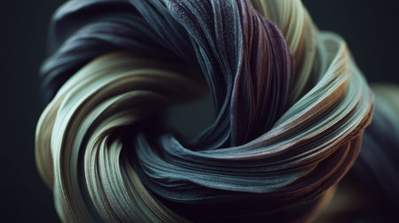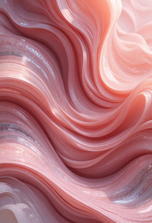 Swirling abstract organic layers of pink and pale green fabric with soft light and shadow effects creating a fluid...