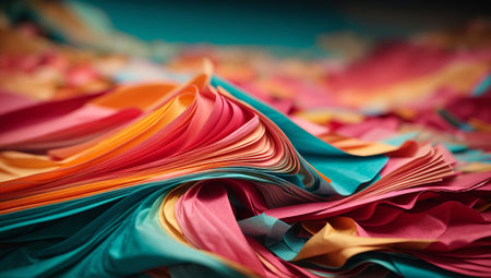 Colorful abstract background of curved sheets of paper stacked in a row