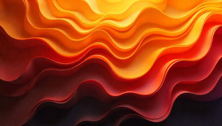 Abstract gradient waves with orange, red, and dark tones