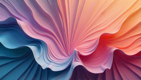 Multicolor gradient symmetrical pattern in pastel tones, creating a wave dance of colors. 3d rendering digital illustration