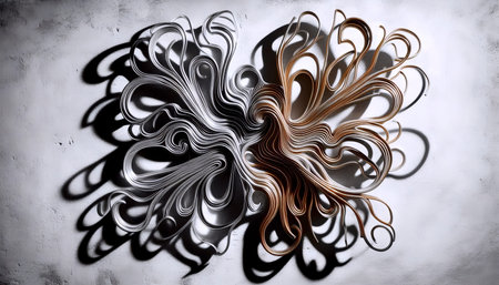 A colored abstracting close-up of merged sculptor's wire shadows, Ai generated image