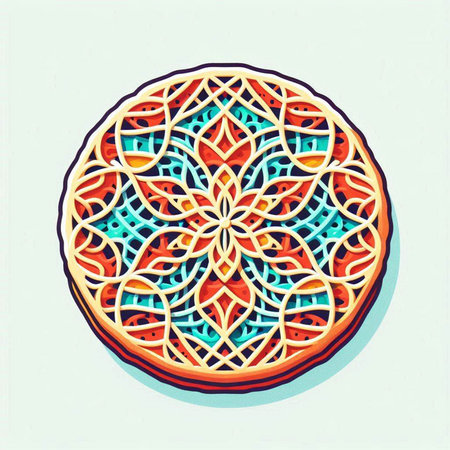 Close-up of intricate, colorful geometric patterns in a rainbow gradient.