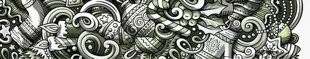 New Year hand drawn doodle banner. Cartoon detailed flyer.