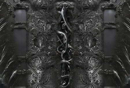 An abstract close up of detailed pattern sword blade designs forming a beautiful medieval / viking / celtic druid style background. A.I. generated art.