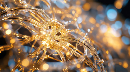 A detailed shot of illuminated golden fairy lights, showcasing their intricate arrangement and the warm, inviting glow they cast, perfect for festive themes.
