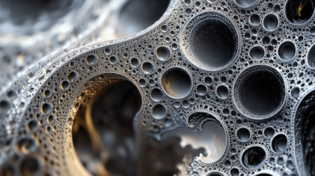 Microscopic steel texture, abstract metallic art. Black abstract, intricate steel close-up.