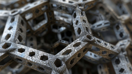 An intricate abstract metallic pattern featuring unique shapes and textures, presenting a modern industrial aesthetic perfect for artistic projects.