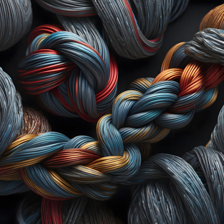Vibrant Intertwined Strands A Close-up of Colorful Fibers in an Artistic Tapestry Texture