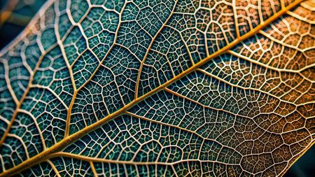 Close-up view of a leaf's intricate vein network, showing its delicate structure and natural beauty. Macro photography at its finest.