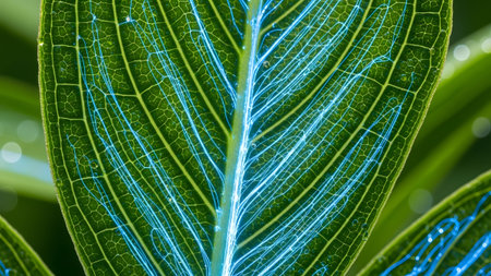Vibrant leaf vein glows in macro magnification generated by artificial intelligence