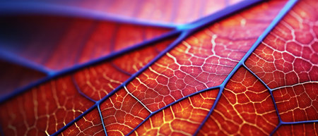Vibrant multi colored leaf vein pattern in extreme close up macrophotography generated by artificial intelligence