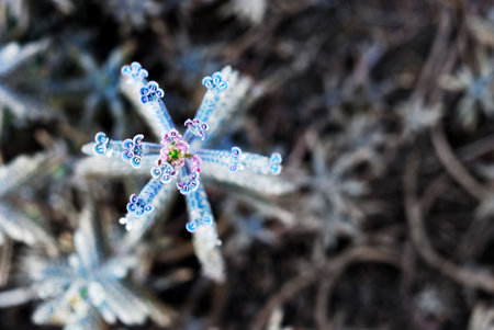 chrysanthemum buds captured in ultraviolet photography with focus stacking technique. the uhd image showcases soft blue hues and fluid lines, creating a romantic scene that's hard to believe. ai generated