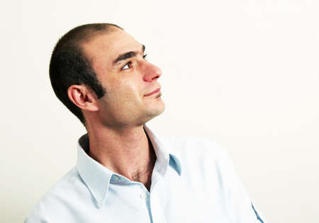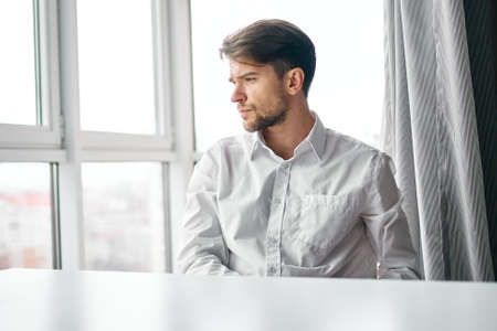 Handsome man elegance pensive look white shirt