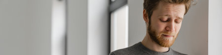 Young overweight man reflecting by the window, contemplating lifestyle changes for better health