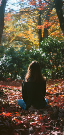 Tranquil Autumn: Woman Reflecting by the Serene Lake