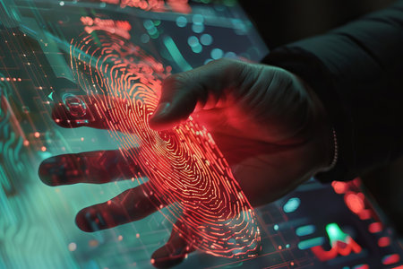 Fingerprint scan provides cyber security access. Generative AI