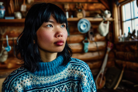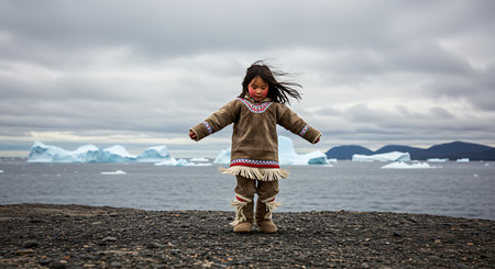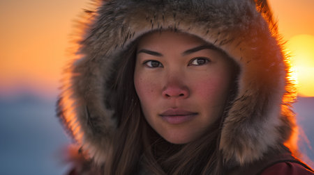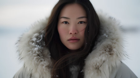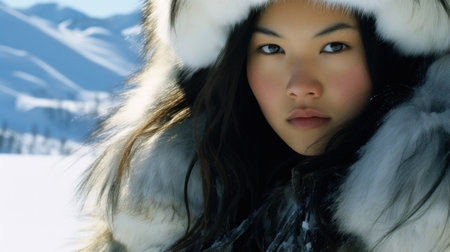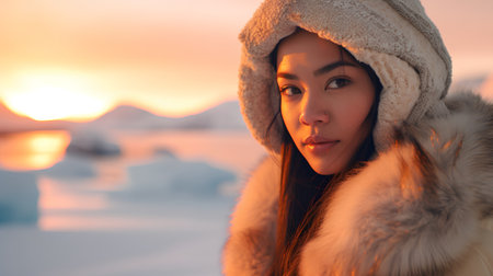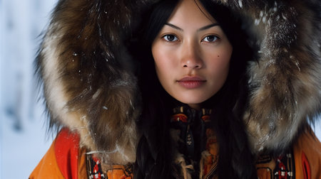 A captivating Greenlandic woman in Greenland, emanating grace and resilience, embodying the vibrant Inuit culture and Arctic beauty. AI generated.