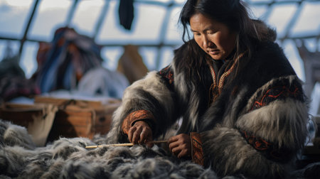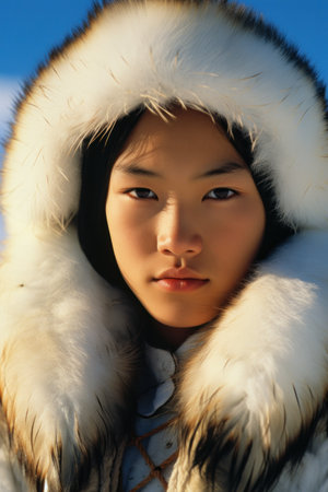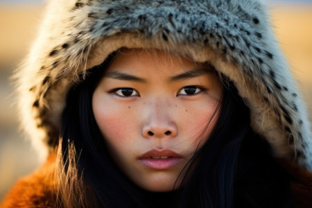 Portrait of woman from Nenets tribe in Siberia. ai generated art