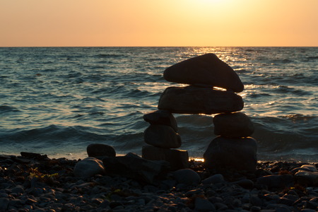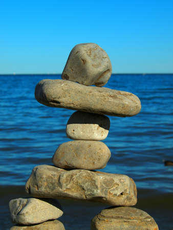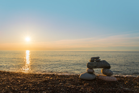 Peace and meditation symbolized by a pile of rocks on the beach: Zen symbol.