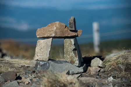 Pile of stones on the top of the mountain, close-up