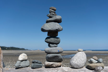 Stones stacked on top of each other on the seashore