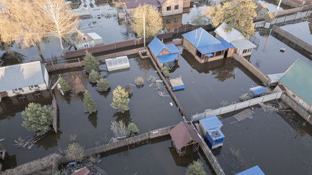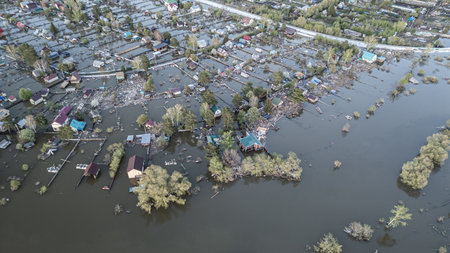 evastating Flooding Submerged Houses, Aerial View. High quality photo