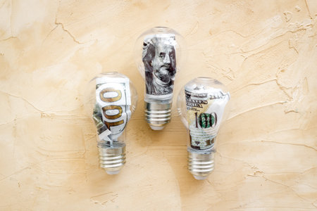 light bulb with dollar bill and money