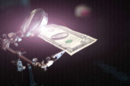 Money banknotes and magnifying glass written with INVEST.