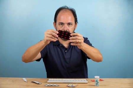 Patient holds the blister card of the medication he should take.