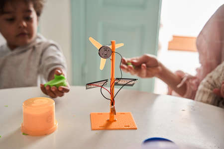 Assembly of electronic mechanical device. Manufacturing, engineering and educational concept