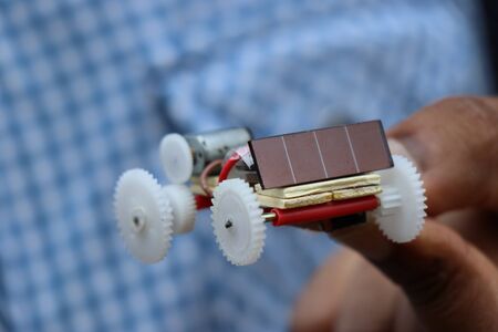 Small solar powered car used in solar car race. Solar car which runs on solar panel power which is future of energy