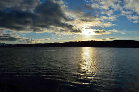blue fjord and sun over tromsoe city island in late autumn