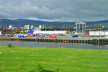 Derry Londonderry, United Kingdom- December 17 2021 : Cargo ship arriving in Northern Ireland