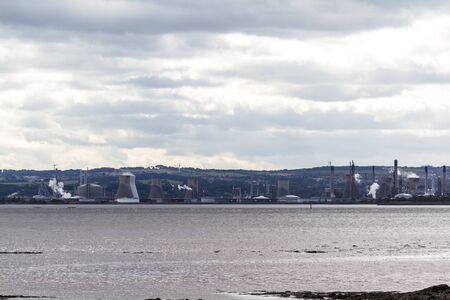 Grangemouth, Scotland - September 16 2019: View of the oil refinery from Culross across the Firth of Forth, Grangemouth UK September 16, 2019