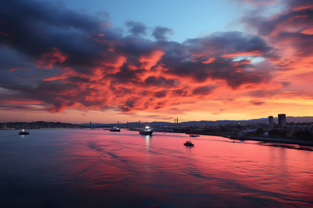 Beautiful sunset over the Bosphorus Strait in Istanbul, Turkey
