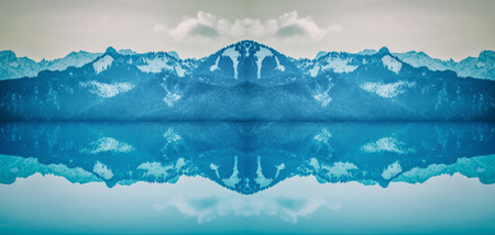 Serene mountain reflection creating a cinematic pattern texture on the calm lake surface